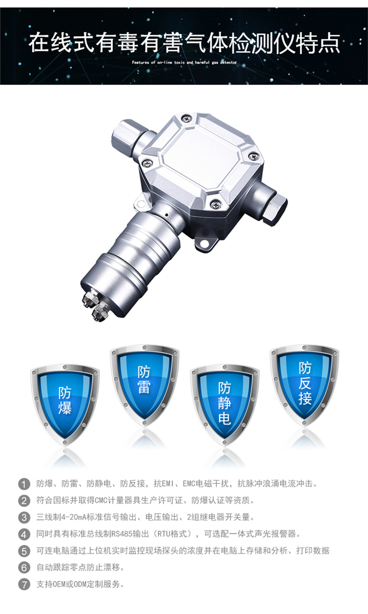 防爆、防雷、防静电、防反接,抗EMI、EMC电磁干扰,抗脉冲浪涌电流冲击。